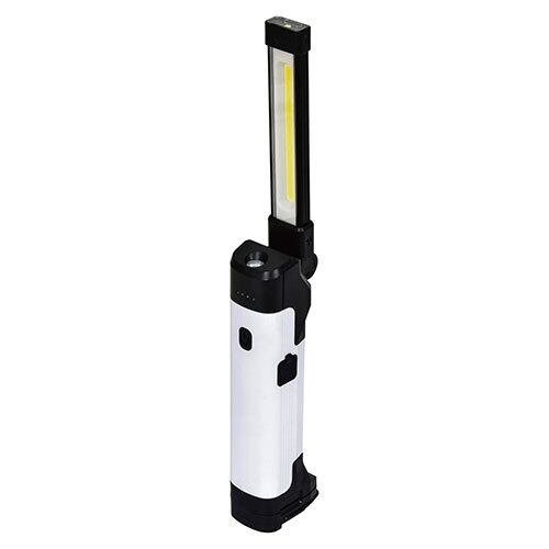 充電式LEDハンディライト。 クランプで挟むことができ底面にフックとマグネット付きです。 点灯パターンは天面・側面・スポットがあり側面とスポットは無段階調光ができます。
