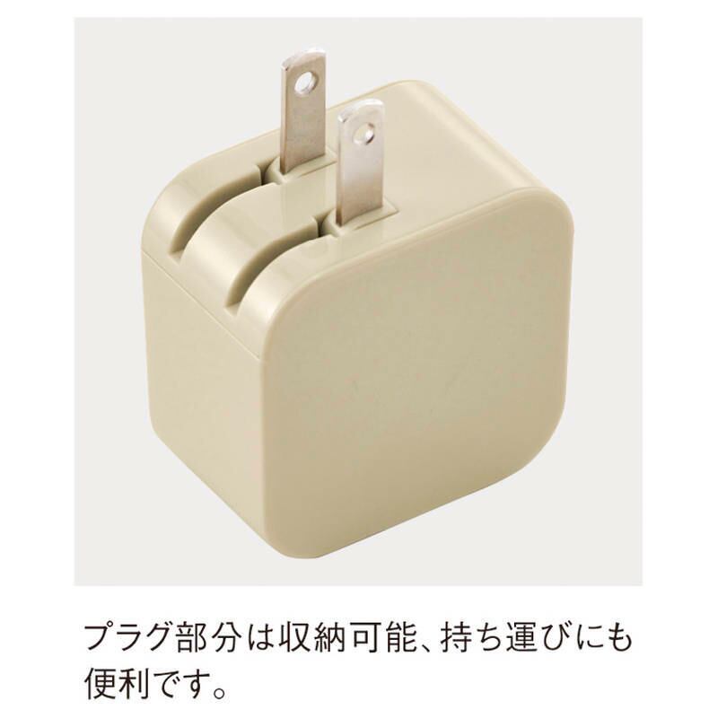 コンセントの電源をUSB規格に変換するACアダプター 2ポートなので同時に複数の電子デバイスの充電が可能です。急速充電対応。